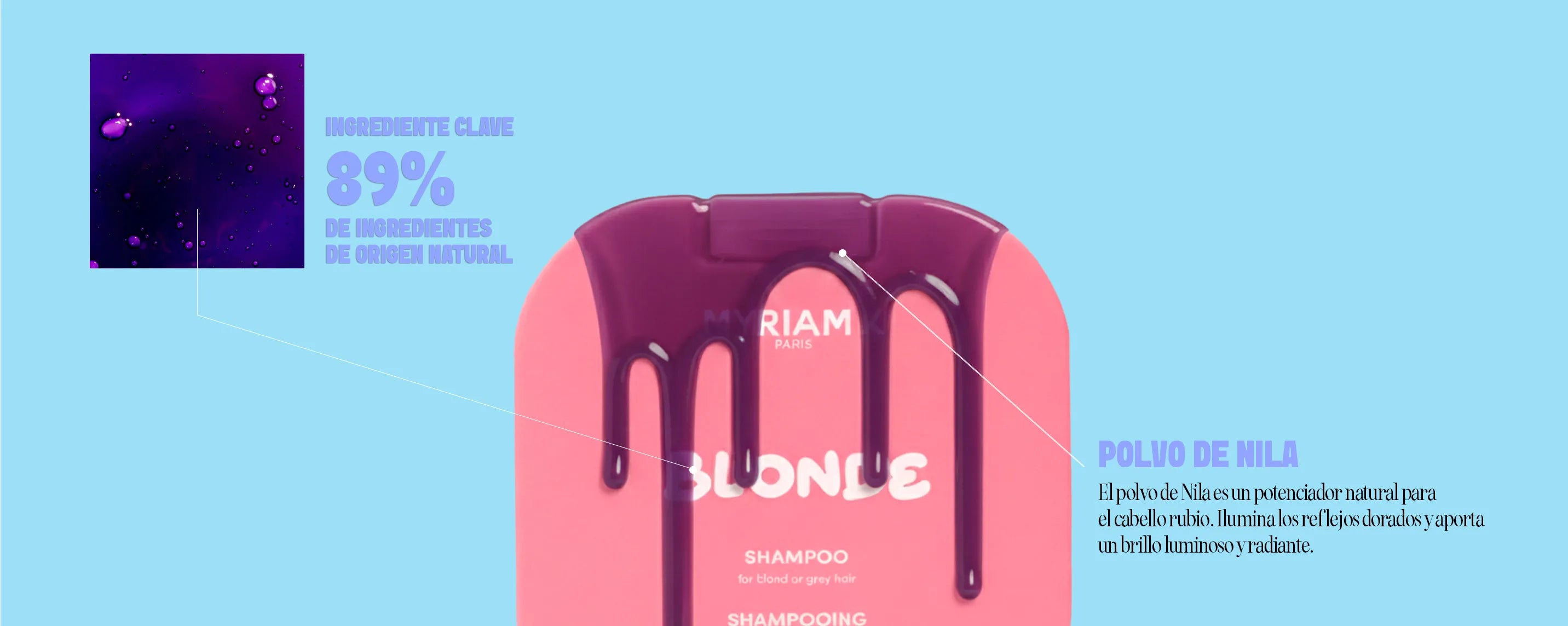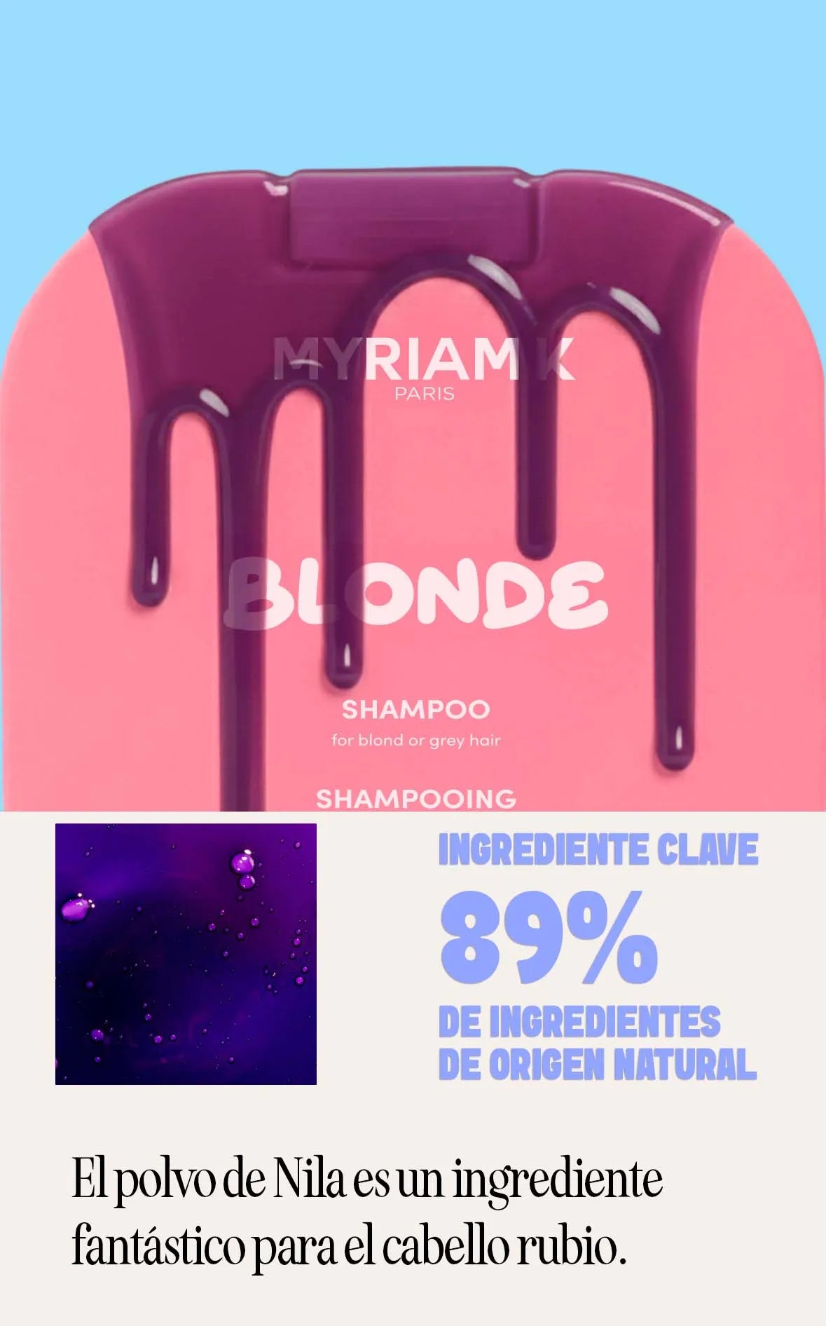 Dale a tu cabello rubio la atención que se merece con nuestro champú BLONDE Myriam•K Paris ®. Neutraliza los reflejos no deseados, nutre tu cabello y disfruta de un cabello radiante y hermoso.