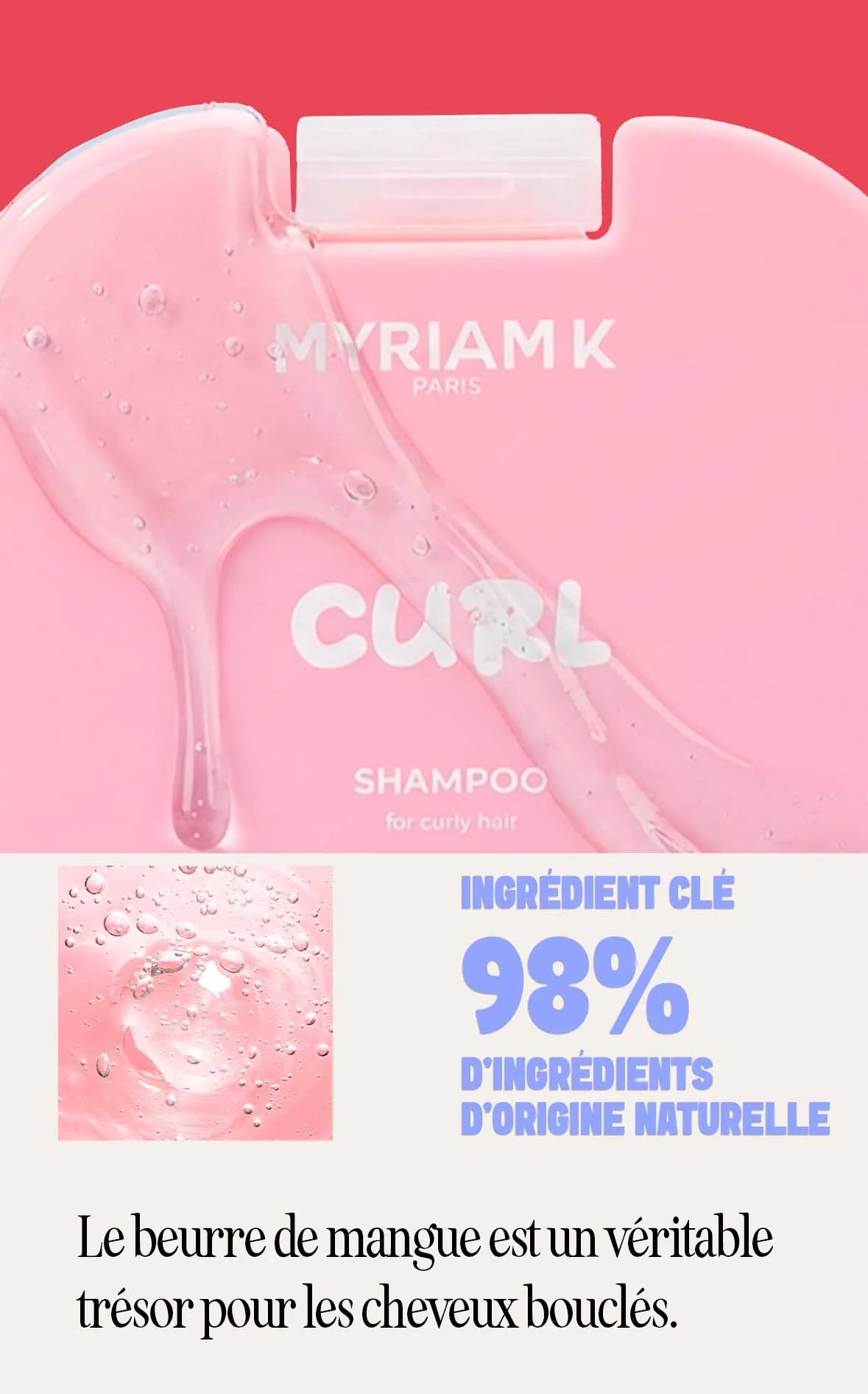 Le shampoing pour cheveux bouclés Myriam K nettoie sans brusquer, nourrit sans alourdir et prépare vos cheveux à recevoir le soin qu’ils méritent.