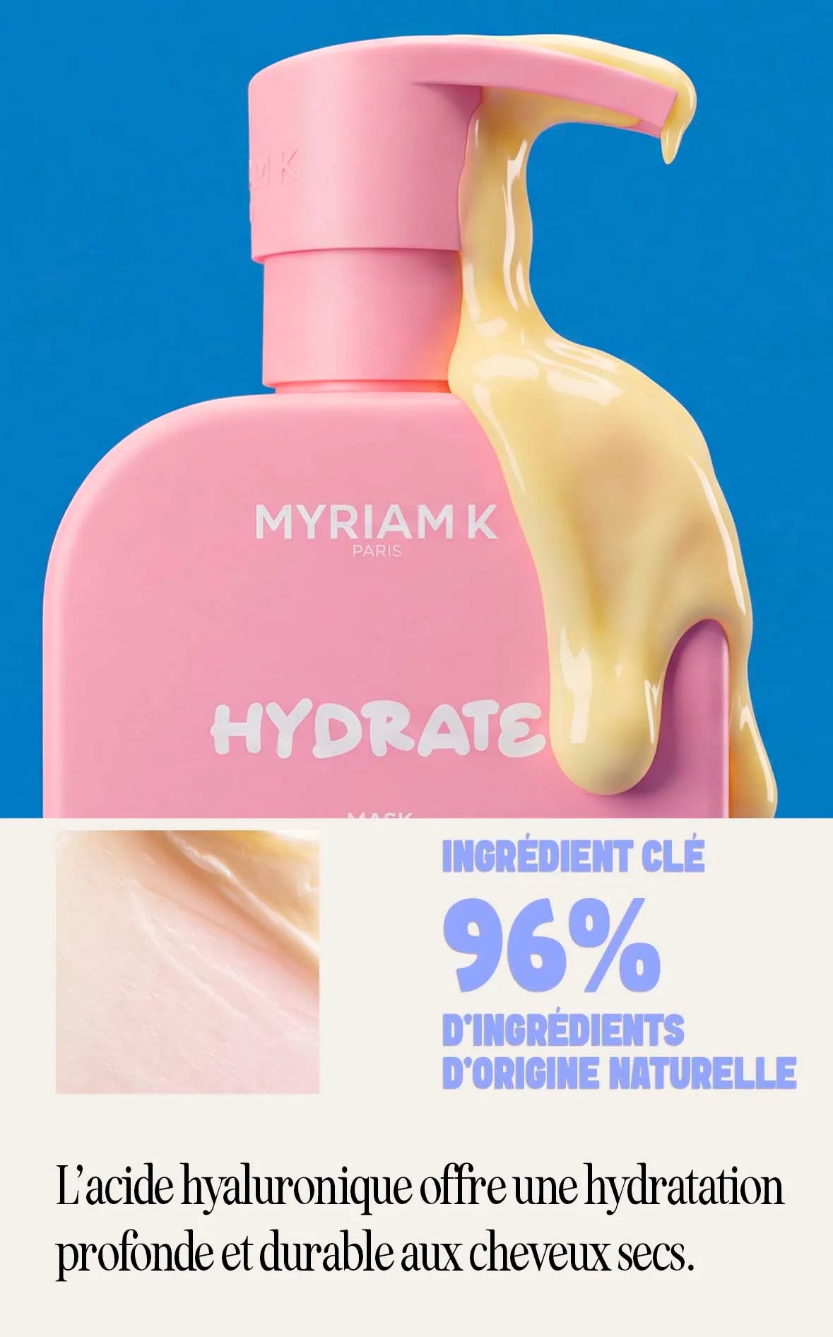 Application du masque Hydrate Myriam•K Paris® pour revitaliser, adoucir et lisser la fibre capillaire