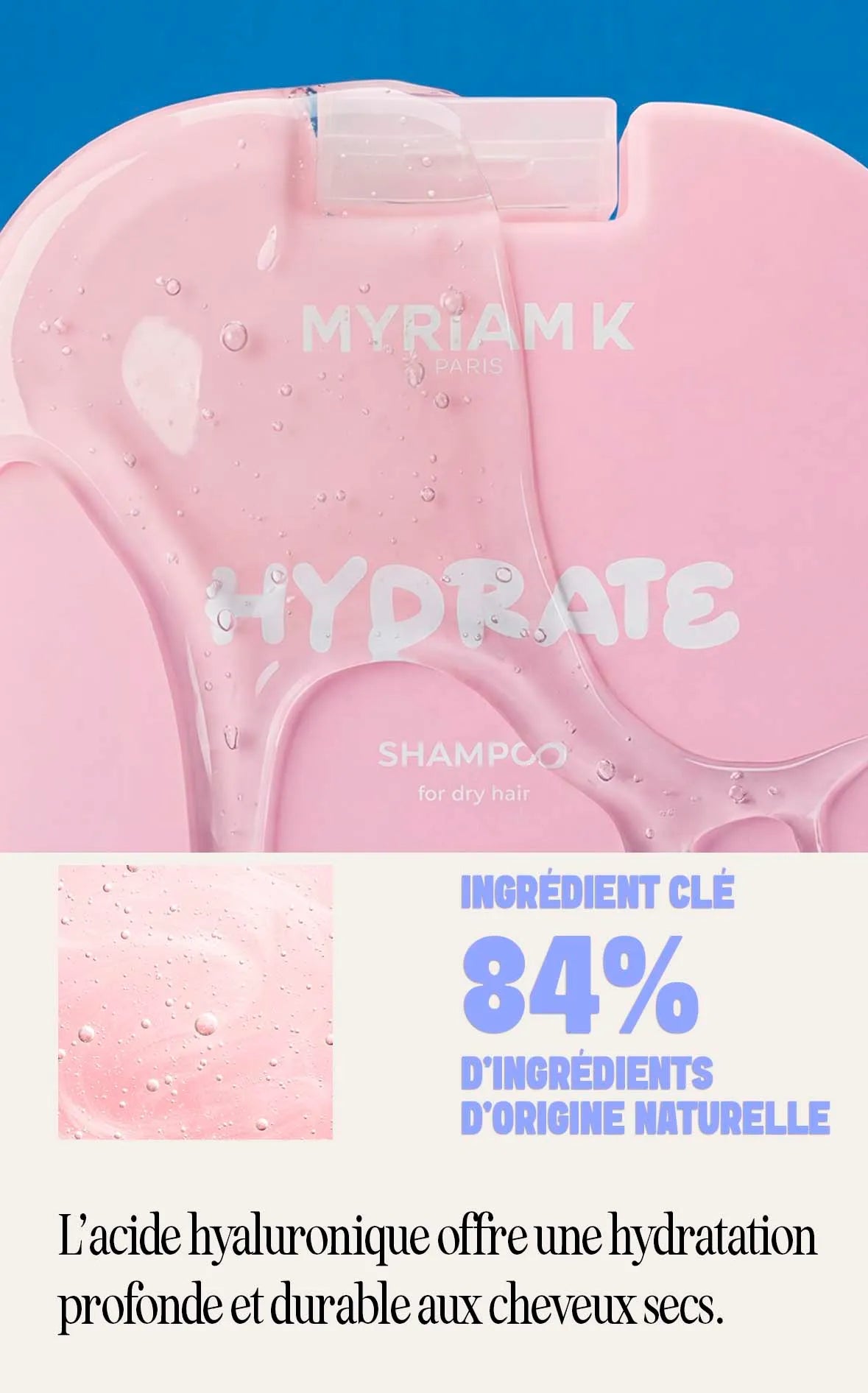 Vidéo montrant l’utilisation du shampoing Hydrate Myriam•K Paris® pour hydrater et revitaliser les cheveux secs