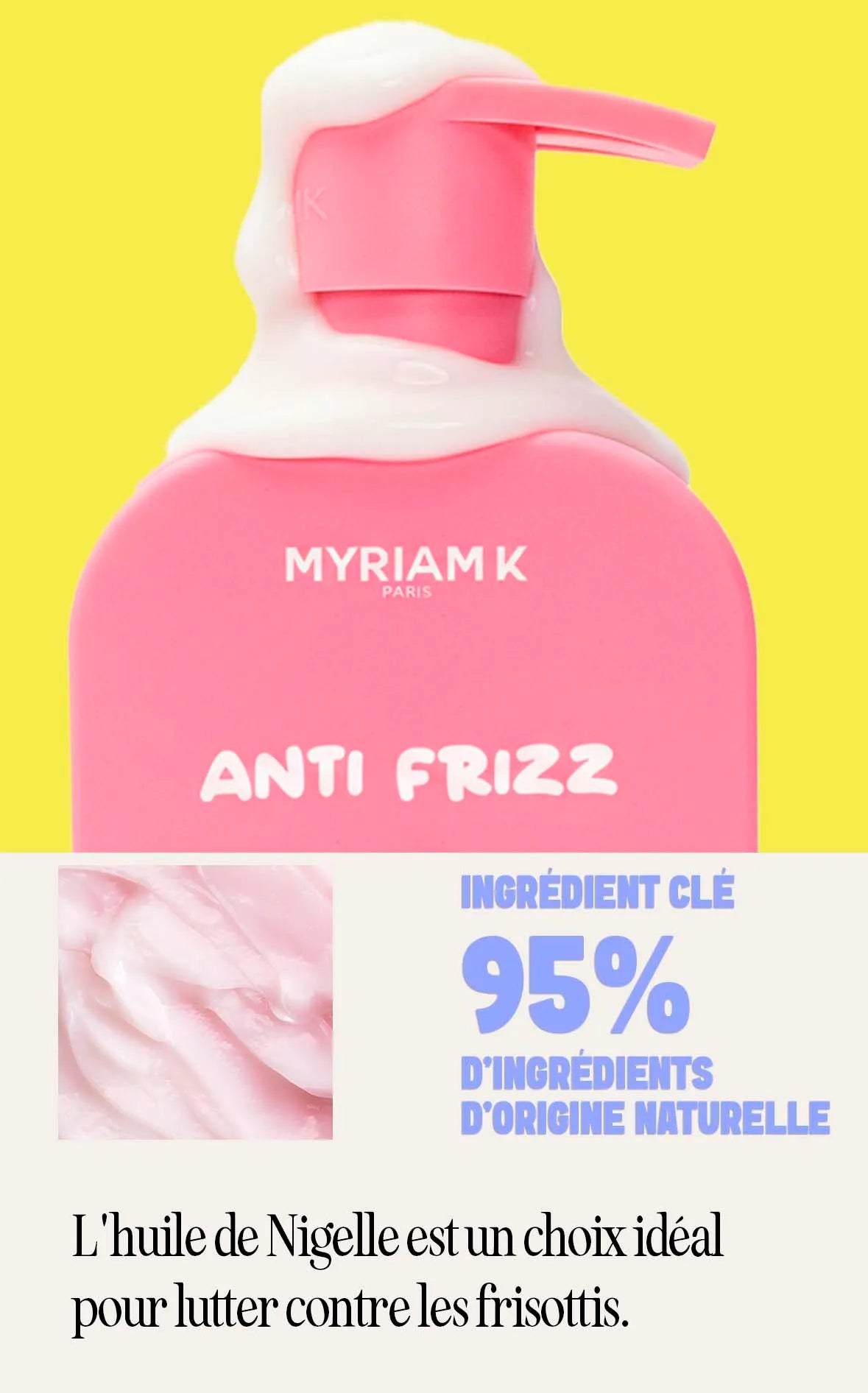 Voici les conseils d'application pour chaque produit du rituel "ANTI-FRIZZ" de Myriam•K Paris® :